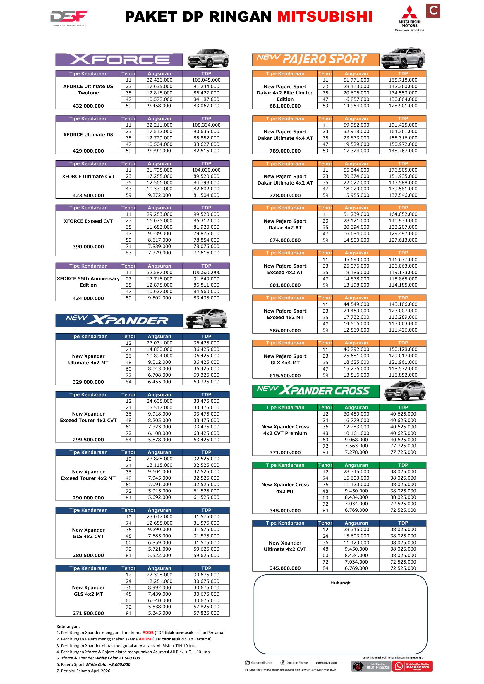 Jangan lewatkan kesempatan ini untuk memiliki kendaraan yang tangguh dan ekonomis. Kunjungi dealer Mitsubishi terdekat sekarang!